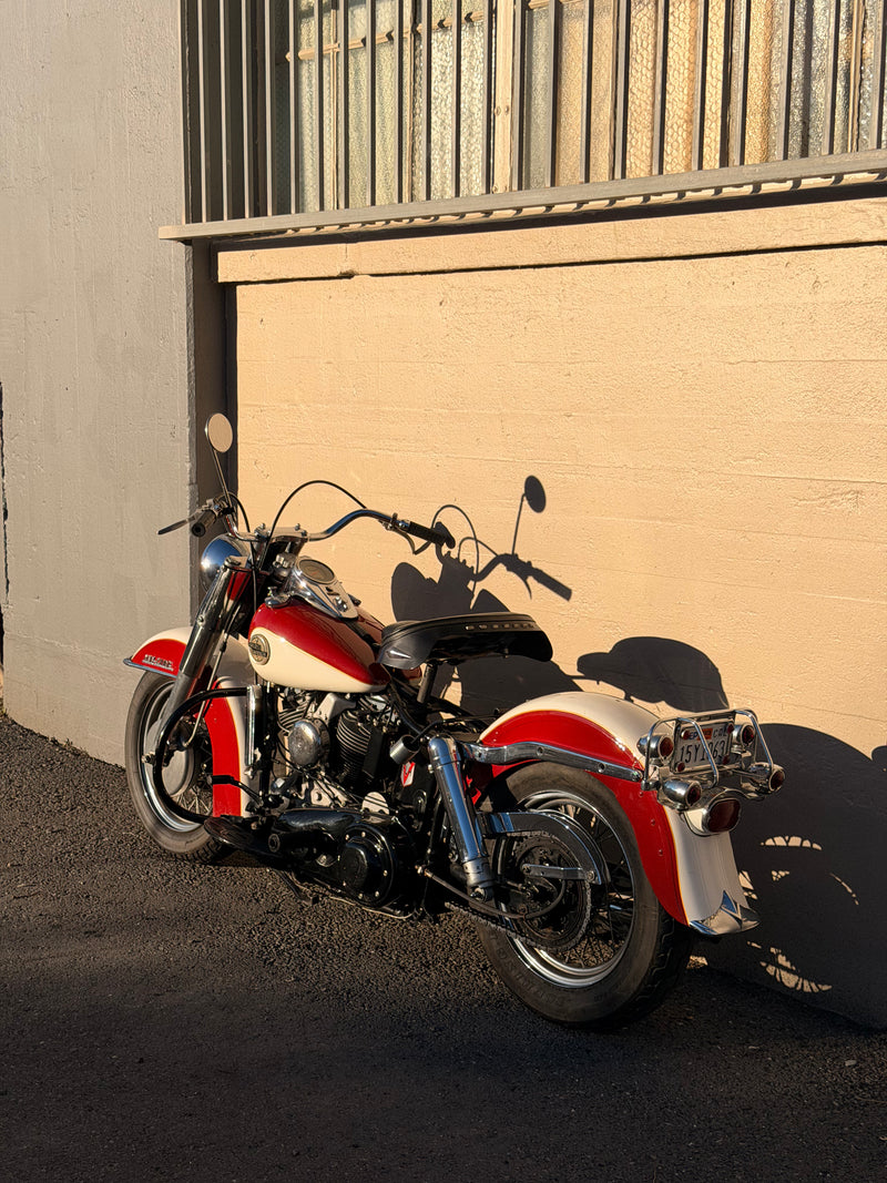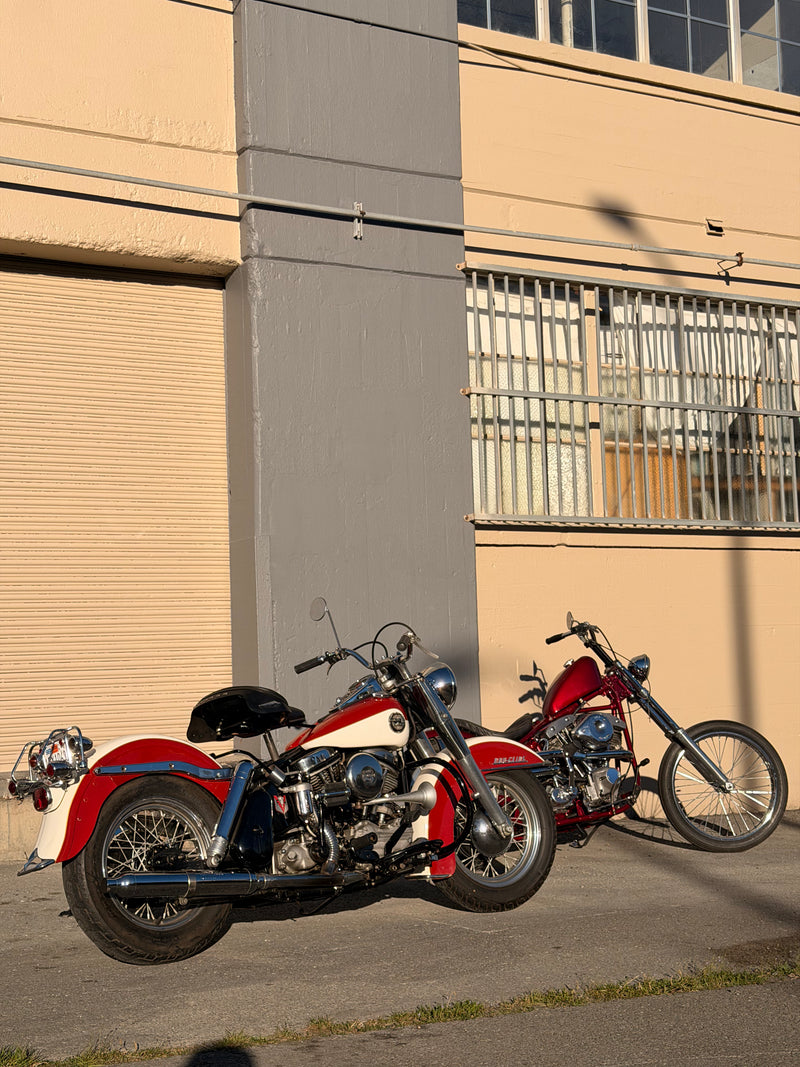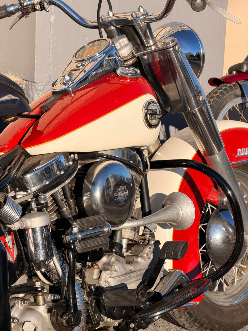 BIKE 1: 1958 Harley Davidson FLH Panhead survivor, mostly original, matching motor, transmission, and frame. Linkert carburetor, 12v charging system, clean California title. All the things you’d want on a stock bike.