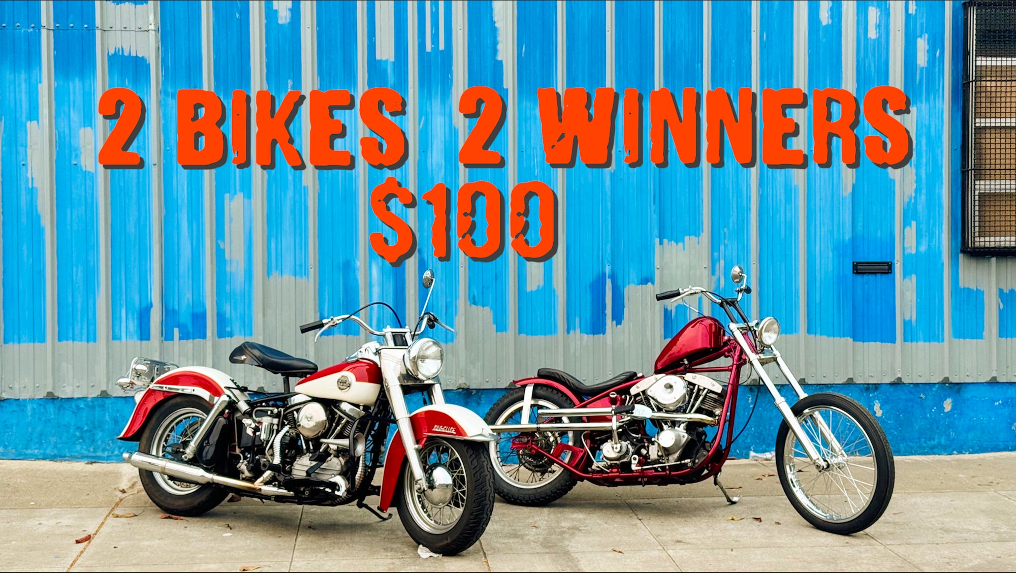 Win a Panhead or Shovelhead for $100!! 1st ticket pulled gets first choice, 2nd ticket pulled will get the other! Will pull tickets live when sold out, international players welcome. $500 will go towards shipping for each bike.